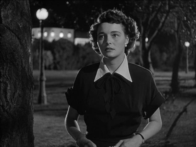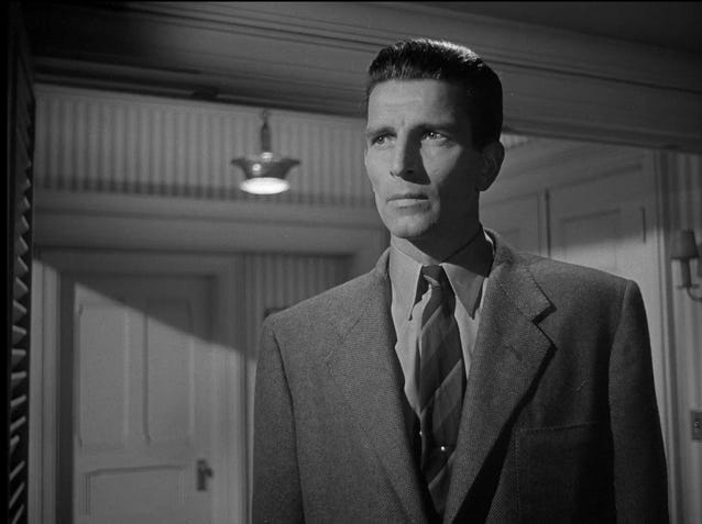 Hugh Marlowe, who plays Helen’s love interest Tom Stevens, never won an Oscar. It is arguable, however, that his starring in 1,907 episodes of the American soap opera Another World was a more singular accomplishment. Marlowe may have had the most difficult role in the film because he had to walk the razor’s edge of being a nice enough and worthy enough boyfriend for Helen while also being slightly, then worryingly, and finally alarmingly unlikable. It’s one of those roles that is so convincingly played you run the risk of hating the actor just because you hate the character.