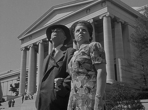 Thankfully this inconsistency in the plot, the seeds of which are planted during the conversations with Secretary Harley and Professor Barnhardt, only fully crystallize in one’s mind after Klaatu’s full (and beautifully crafted) message to the people of Earth at the end of the movie. Information is dealt out sparingly, and it’s best that this is so. Not only does it make the ramp up in tension throughout the film that much more dramatic, but Klaatu’s tour of American culture and human existence is much more enjoyable if we aren’t repeatedly reminded of the fact that he might be about to order the destruction of the planet.